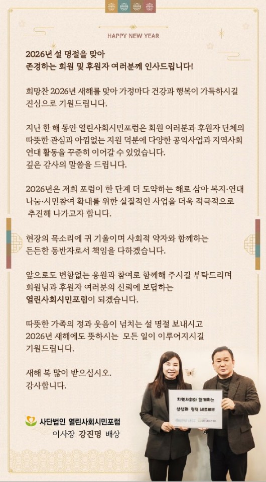 2026년 설 명절을 맞아 존경하는 회원 및 후원자 여러분께 인사드립니다!